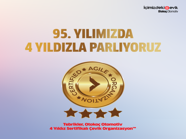 Türkiye’nin lider mobilite şirketi Otokoç Otomotiv, çevik dönüşüm sürecini hızlı ve başarılı adımlarla ilerletmeye devam ediyor. Otokoç Otomotiv son olarak şirketlerin çeviklik düzeyini küresel ölçekte değerlendiren bir kuruluş olan Business Agility Institute tarafından yapılan değerlendirmede, “4 Yıldızlı Çevik Organizasyon” sertifikası almaya hak kazandı.